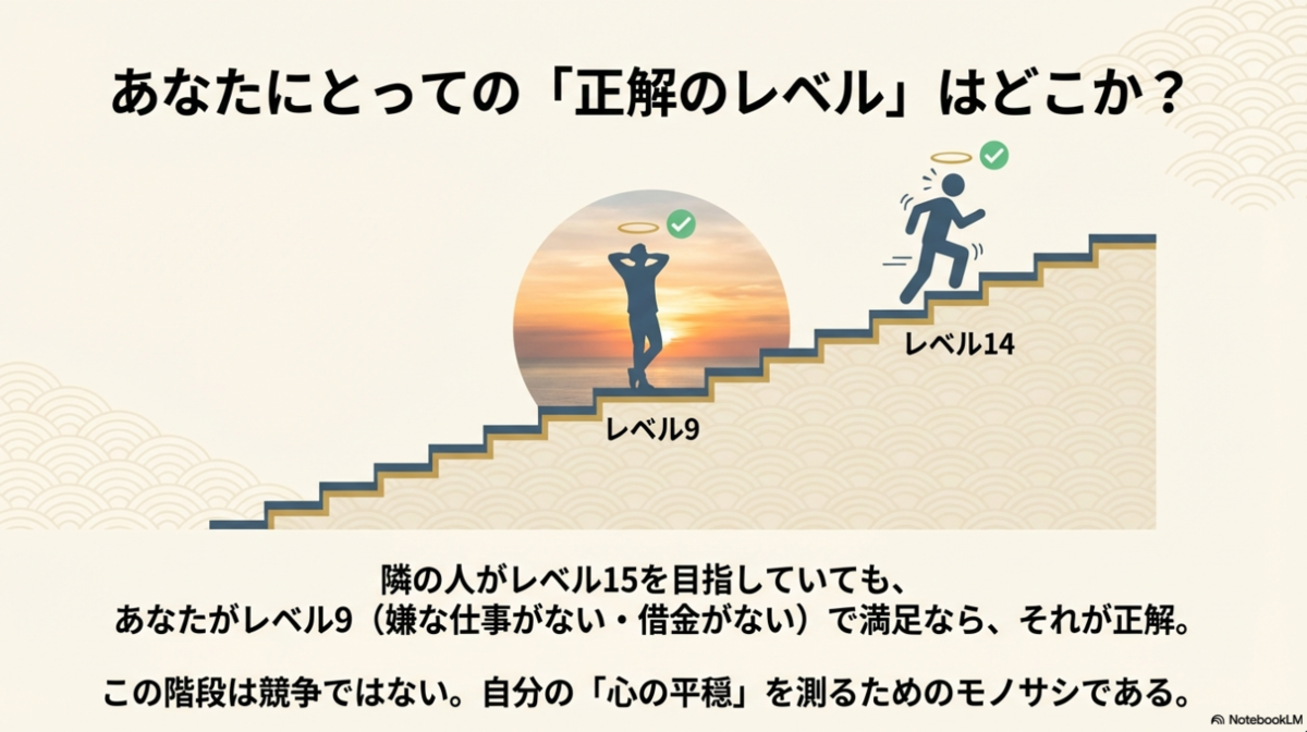 この階段は競争ではなく、自分の心の平穏を測るための指標です。